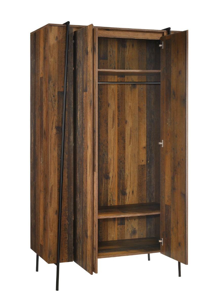 Unique, and full of character, the Abbey series takes you back in time whilst complimenting the modern home. Tubular iron frames laid with rustic wooden panels, make each item in this series individual in appearance, incorporating practical storage solutions for the home. Unique Rustic Design. Complete with Hanging Rail & 2 Internal Shelfs. Metal Hinges, Outer Frame and Legs.