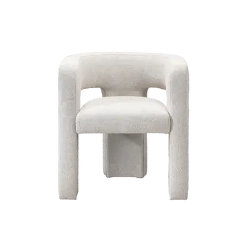The Crescent Occasional Chair features a curved three‑leg frame that flows into the armrests and backrest. Upholstered in durable boucle fabric with sustainable GreenFR flame‑resistant material, it offers comfort, style and eco‑friendly construction.