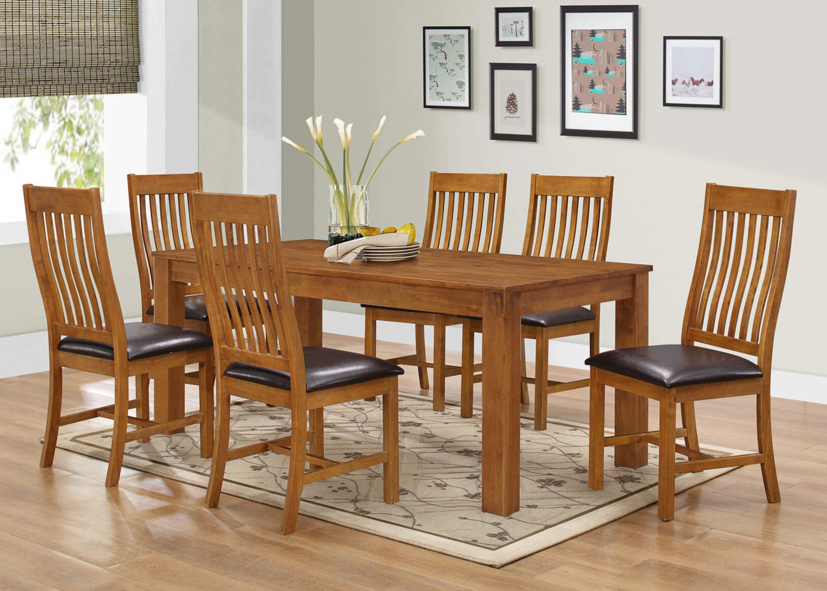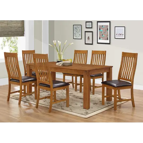 The Adderley Dining Set with 6 Chairs is a sophisticated and practical addition to any dining room. Crafted from solid rubberwood with a warm walnut finish, this set combines durability with timeless elegance.