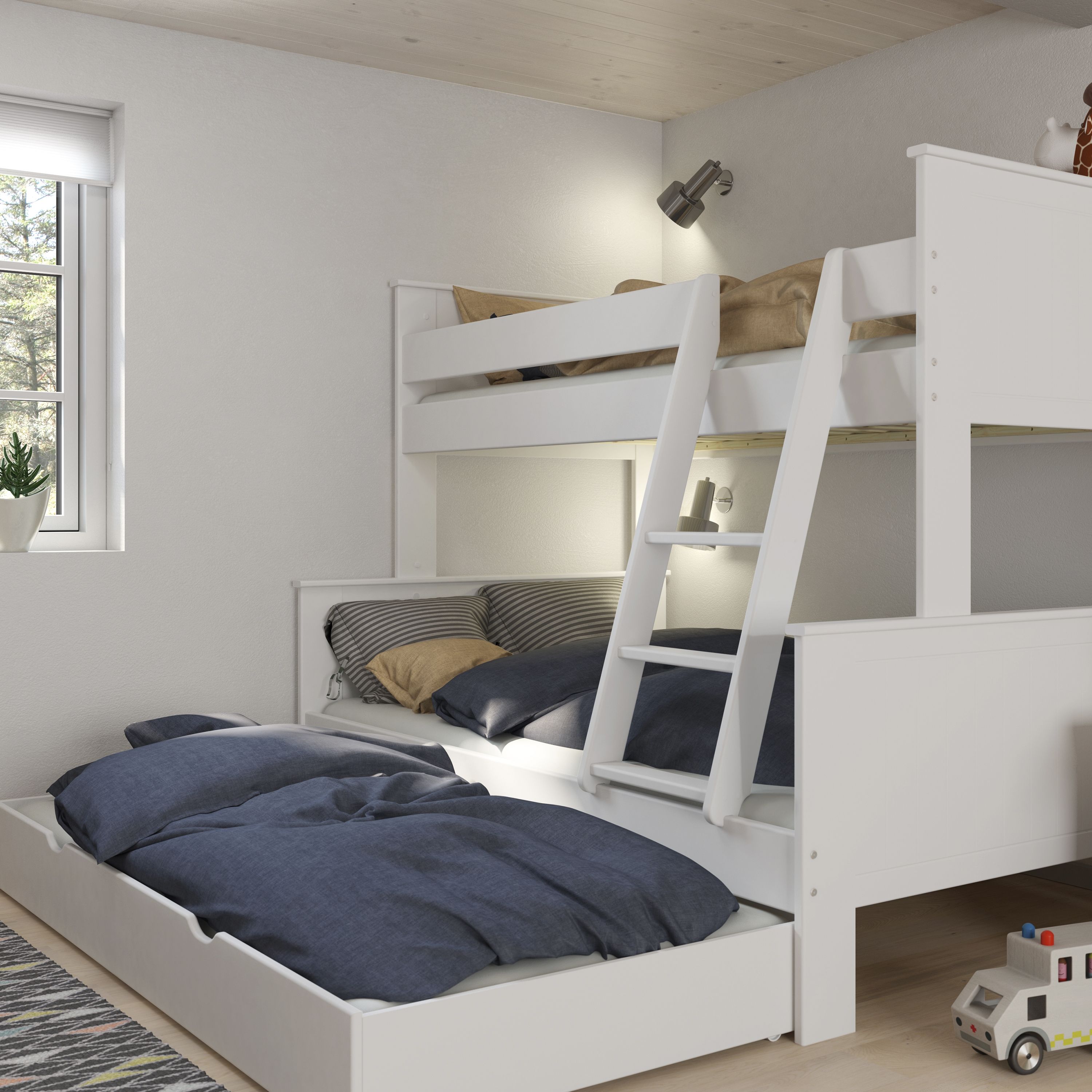 The Alba single over double bunk bed from Steens is made from sturdy, durable MDF. The simple white finish matches any child's room. An optional under bed or pull out bed are available for purchase separately, offering a space saving solution and ample storage.