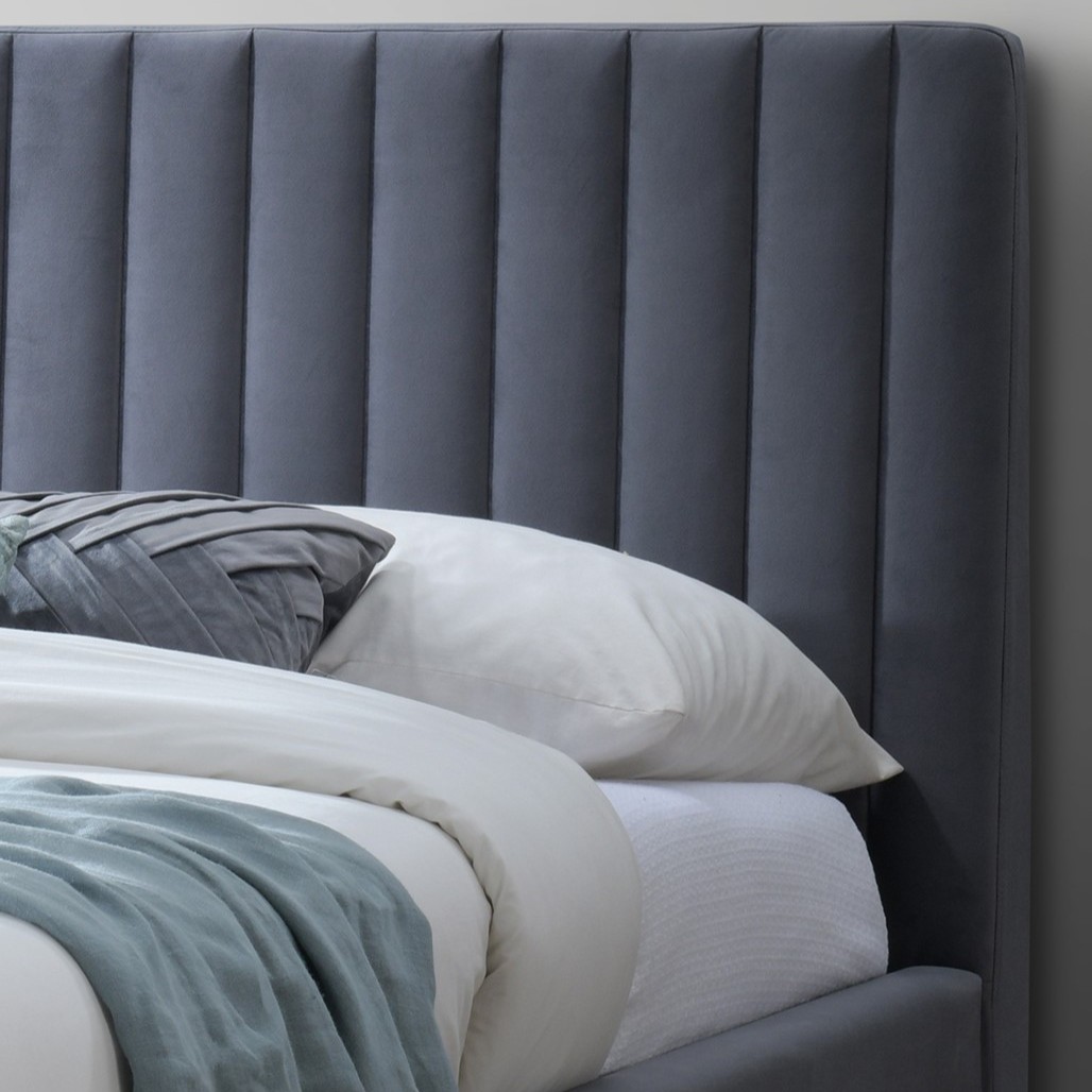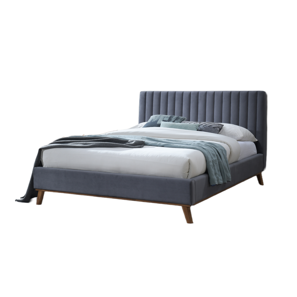 The Albany contemporary bed frame features a soft velvet touch fabric which compliments its strong internal structure. The unique design and combination of wood and fabric make this the ideal piece for a modern bedroom. The Albany is available in a dark or a light grey to suit anyone looking for a daring designer addition to their home. The sprung slatted base and thick centre support bar ensure the Albany is both comfortable and durable.