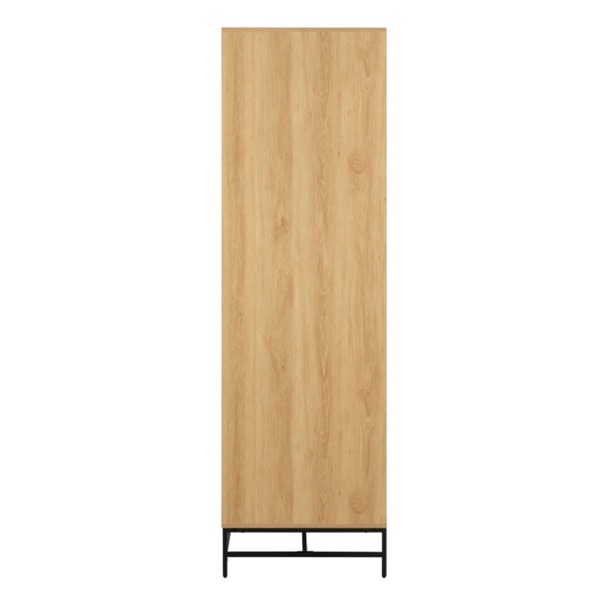 The Albany wardrobe offers spacious and stylish storage with its modern design. Made from oak rough melamine, it features a frame with four doors, six adjustable shelves, and a clothes bar, providing ample space for all your clothing and accessories. The lamella fronts add a touch of texture, while the black powder-coated steel base brings an industrial edge. Measuring 99x60x200 cm, this wardrobe combines functionality and contemporary aesthetics, making it a perfect addition to any bedroom or living space.