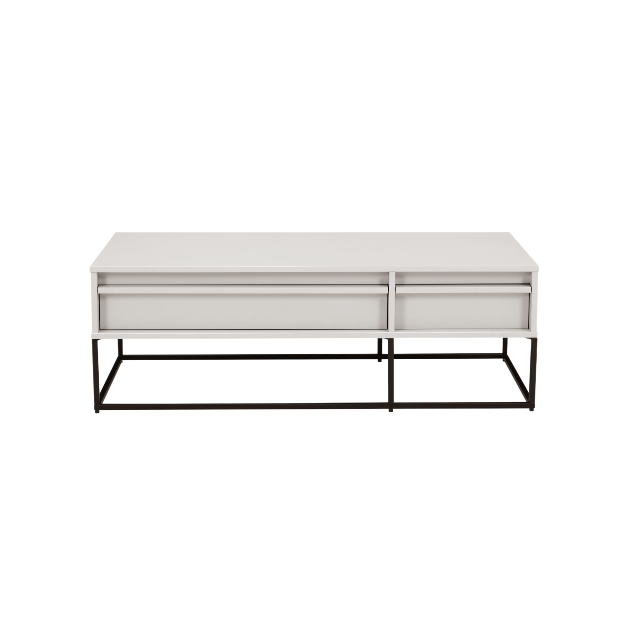 The unit includes two pull‑out drawers—one wide and one narrow—offering flexible storage for remotes, accessories, media devices and living‑room essentials. Each drawer features a seamless integrated handle, maintaining the unit’s minimalist aesthetic while ensuring easy access.