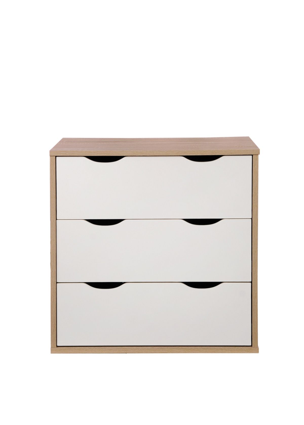 Alton 3 Drawer Chest of Drawers in a modern design with a cut out handle in Sonoma Oak and White. This modern collection would look great in any bedroom. The 3 drawers offer plenty of storage space, allowing you to keep those clothing items neat and tidy. Metal drawer runners provide ease of use, opening smoothly. Whilst the no handle features, adds to the design. Modern Design Chest of 3 Drawers. Sonoma Oak Effect Frame. White Drawer Fronts with Cut Out Handle Design. Metal Drawer Runners Provide Smooth Opening. Measures W60 x H59.5 x D40cm. Manufactured using particle board, each item comes flat packed for self assembly at home. Part of the Alton Furniture Collection.