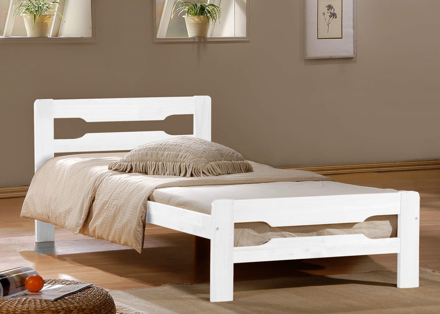Amelia Solid Wood Single Bed – White | Durable Rubberwood Frame for Kids & Teens