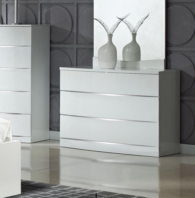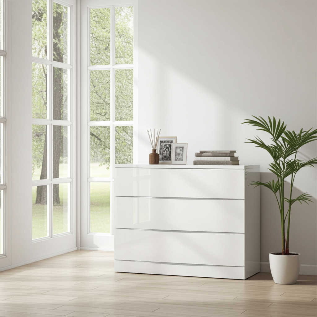 Arden/Widney White High Gloss Dresser – 3 Drawers | Sleek & Spacious Bedroom Storage