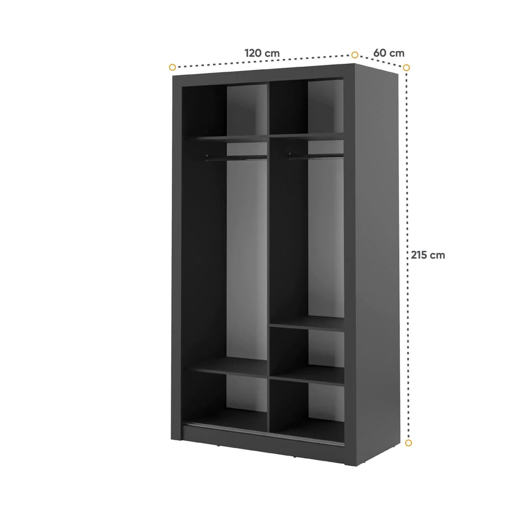 Arti 6 - 2 Sliding Door Wardrobe Black Matt 120cm
