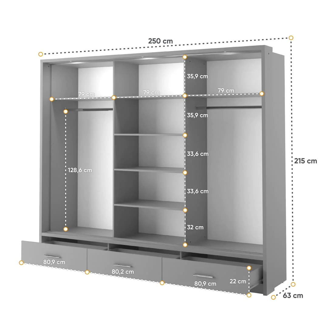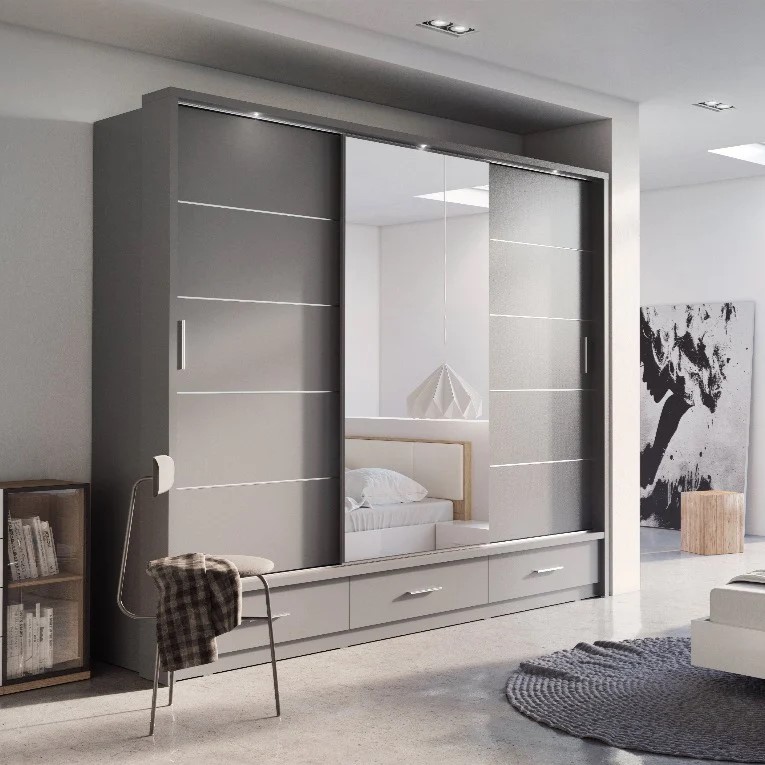 Details about Arti AR-01 Sliding Door Wardrobe Grey Matt 250cm