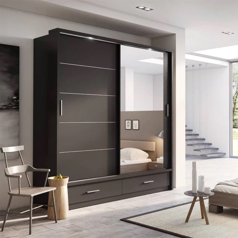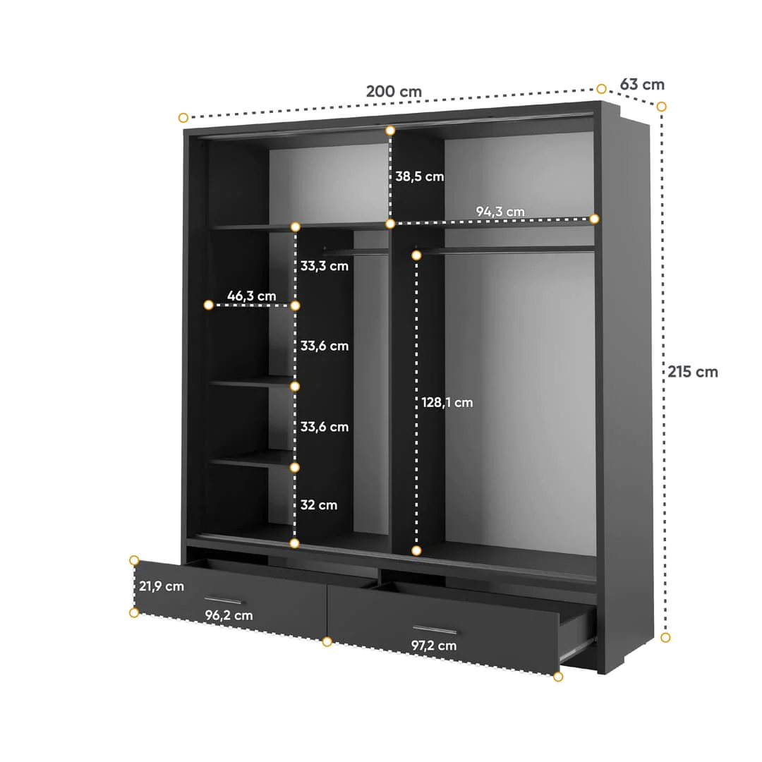 Details about Arti AR-05 Sliding Door Wardrobe Black Matt 200cm