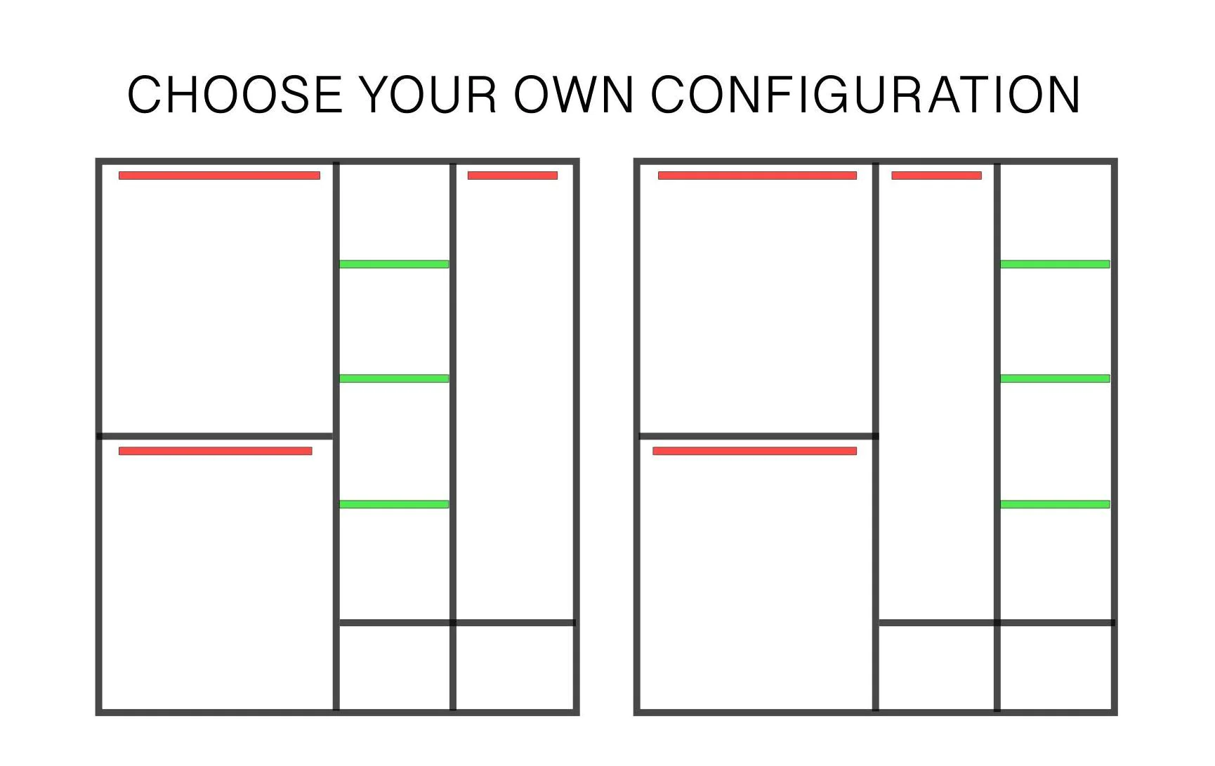 A robust, two-door wardrobe with mirrored fronts and compatibility with LED lights. The AR-17 has an optimized inside-layout with three hanging rails and six compartments. The wardrobe is available in three different neutral colours : timeless white, graceful grey and classy oak.