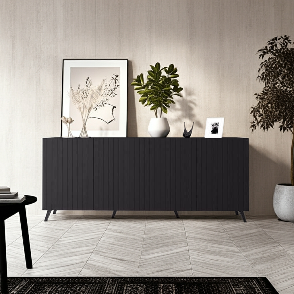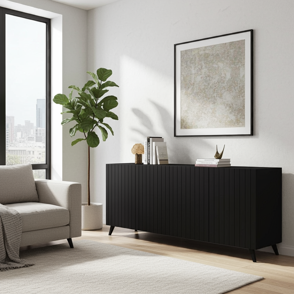Ascot Wide 4 Door Sideboard – Matte Black | Modern Elegance & Storage