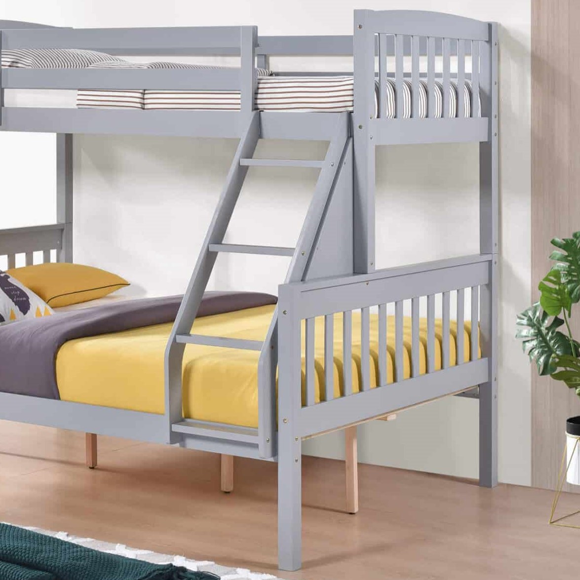 Ashbrook Solid Wood Triple Bunk Bed – Grey Finish with Single Over Double Design