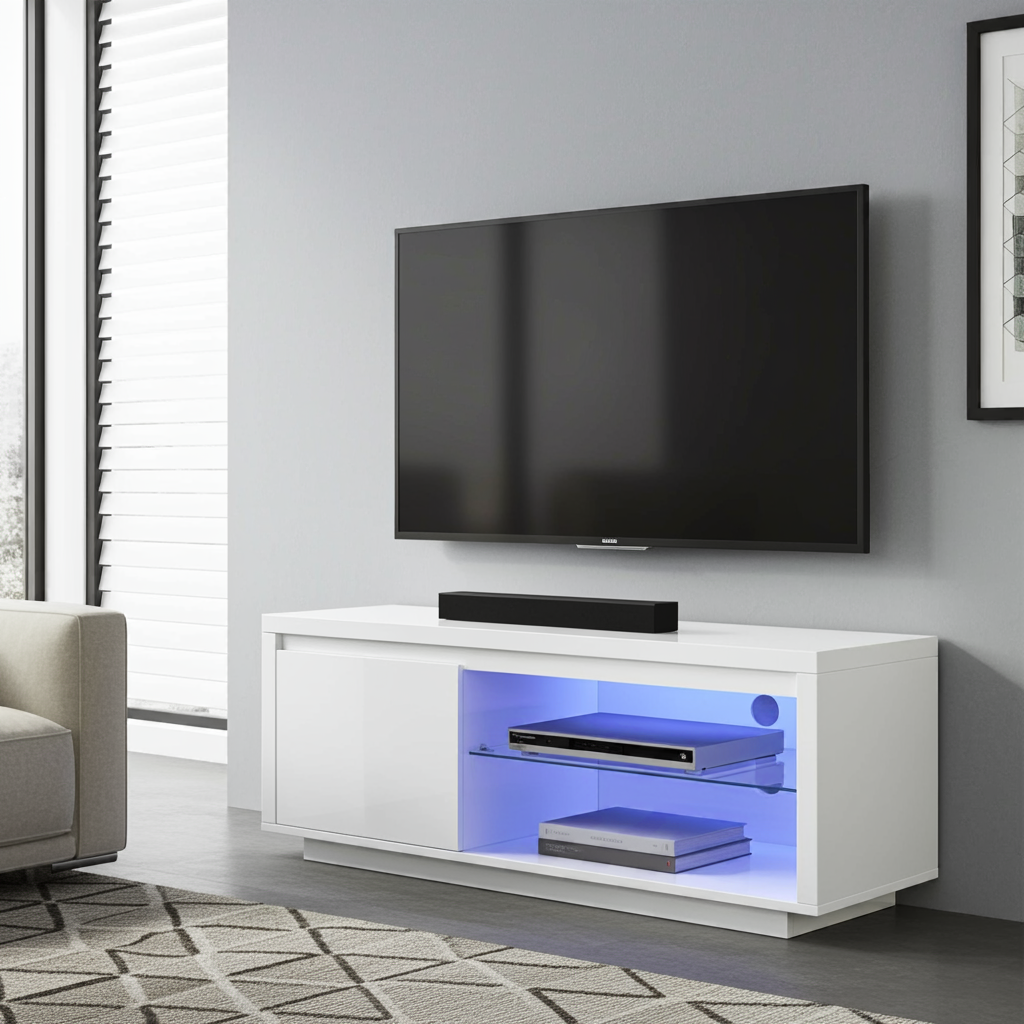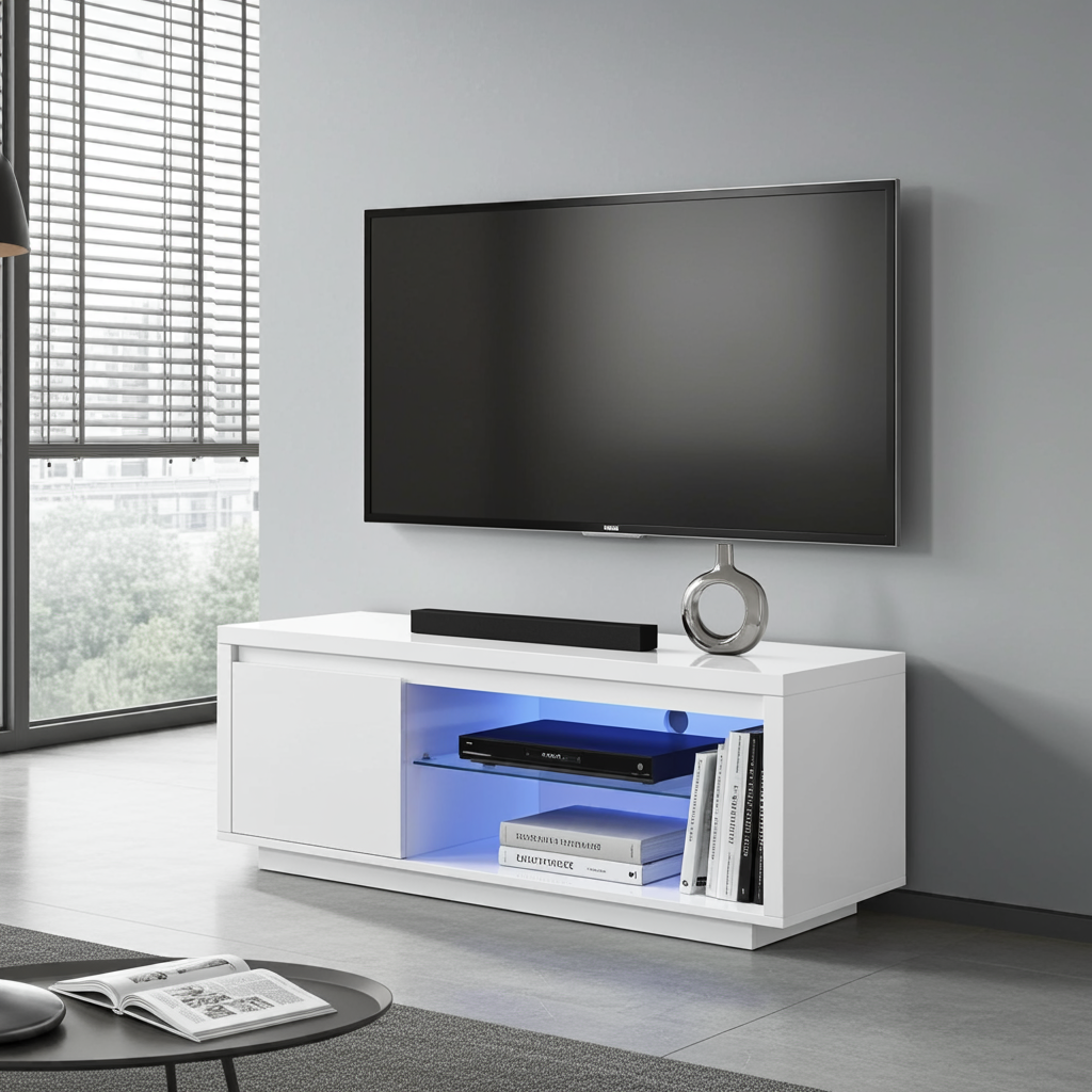 The Astana LED TV Unit – White High Gloss (1 Door) is a contemporary centerpiece designed to elevate your entertainment area. With its glossy white finish and integrated LED lighting, it adds a touch of modern elegance while offering practical storage. The single door conceals clutter, making it ideal for minimalist setups. Whether you're styling a lounge, media room, or studio flat, Astana delivers both form and function.