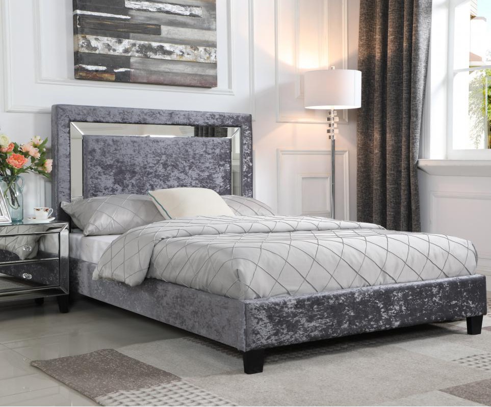 Augustina Bed Crushed Velvet & Mirror, King Size, Also in Double, Silver