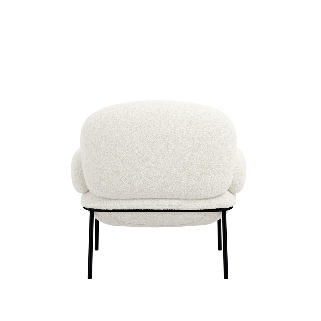 Add comfort and style to your living space with the Avery Ivory Chair – a modern armchair designed for everyday relaxation. Upholstered in soft ivory Sherpa fabric, this chair combines texture with warmth. Its matte black metal frame and padded curved arms create a sleek yet inviting silhouette.