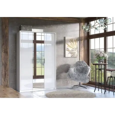Bala wardrobe in white high gloss. This wardrobe features 3 doors with internal shelves and hanging rail.