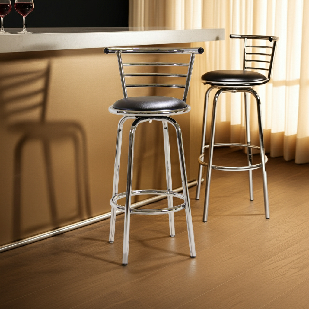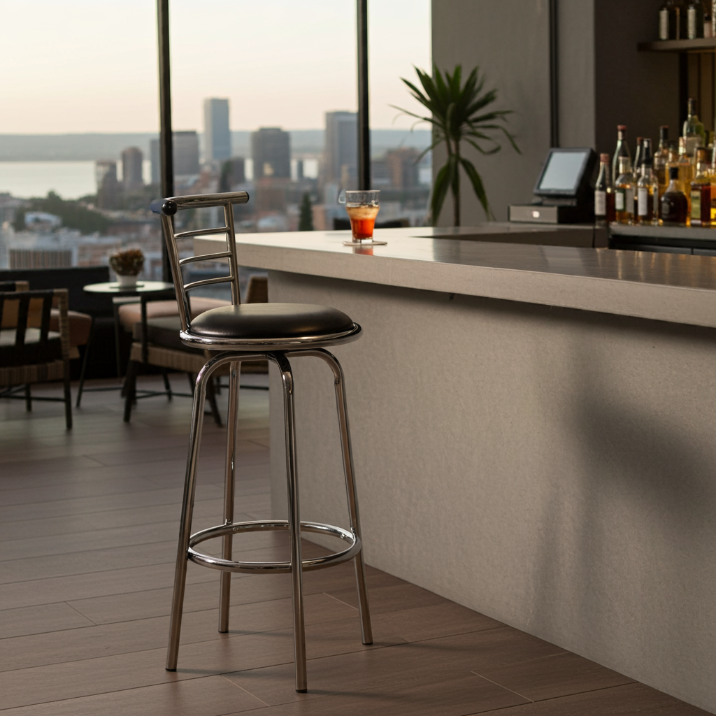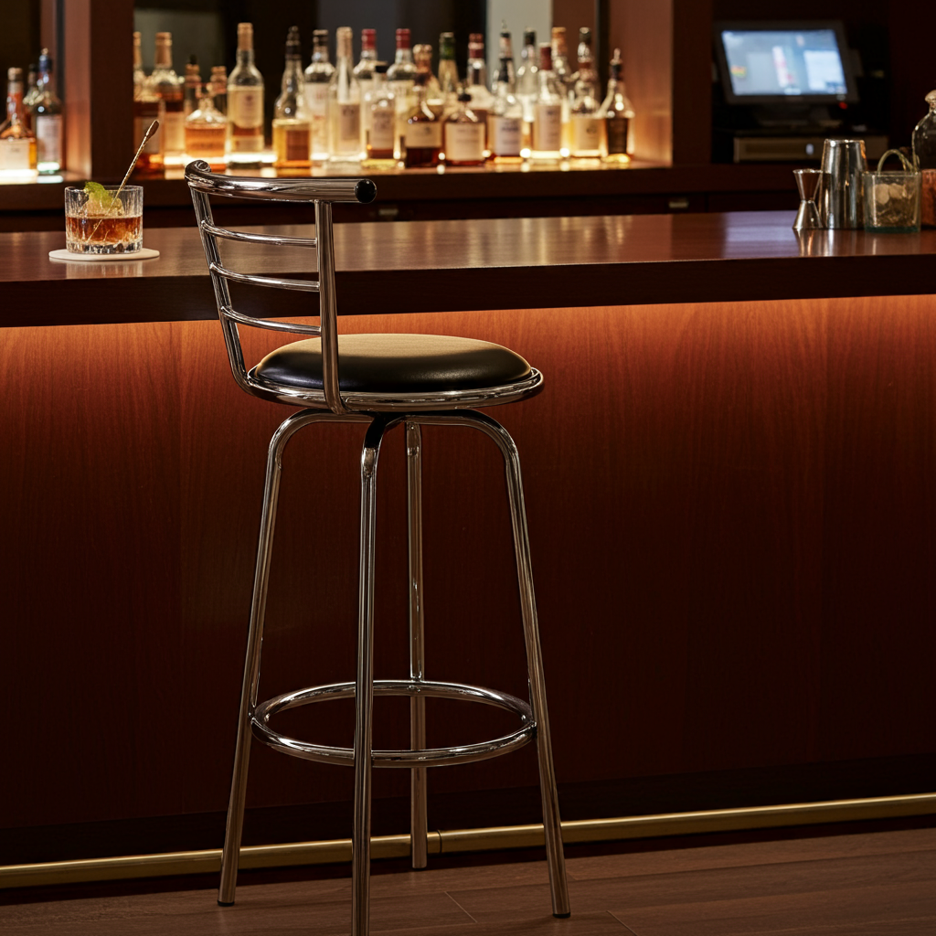 Bar Stool Chrome Swivel – Wide Back | Stylish Black & Chrome Seating