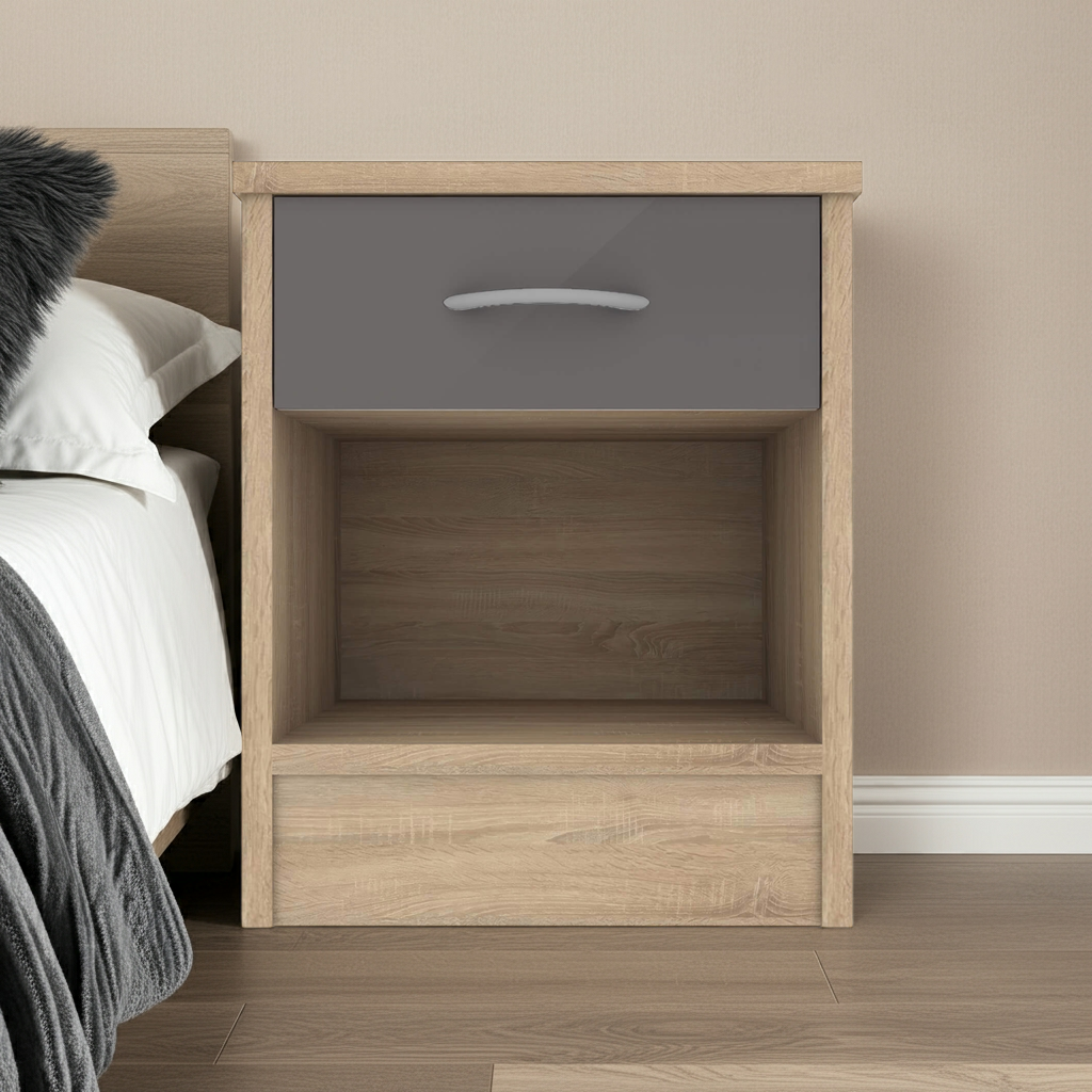 Bardalona Bedside Table – Grey Gloss | Stylish & Space-Saving Bedroom Storage