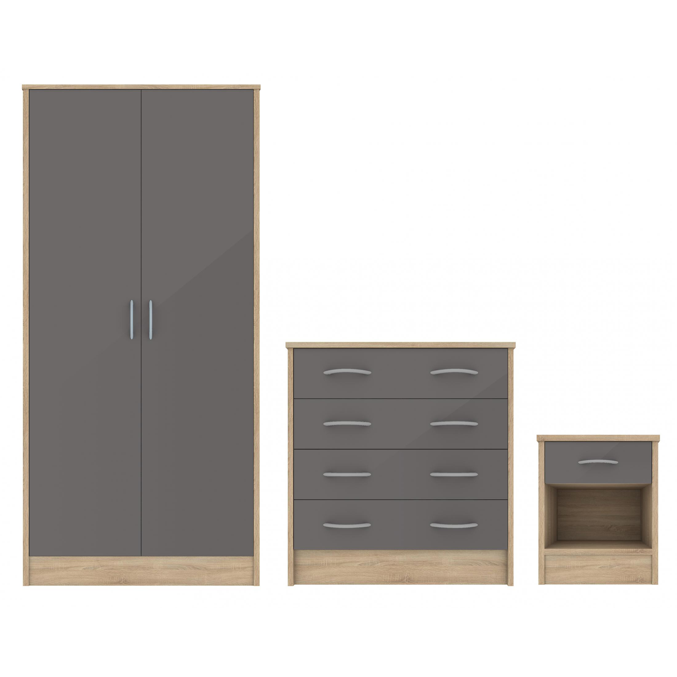 Bardalona Trio Wardrobe, Chest & Bedside Grey Gloss