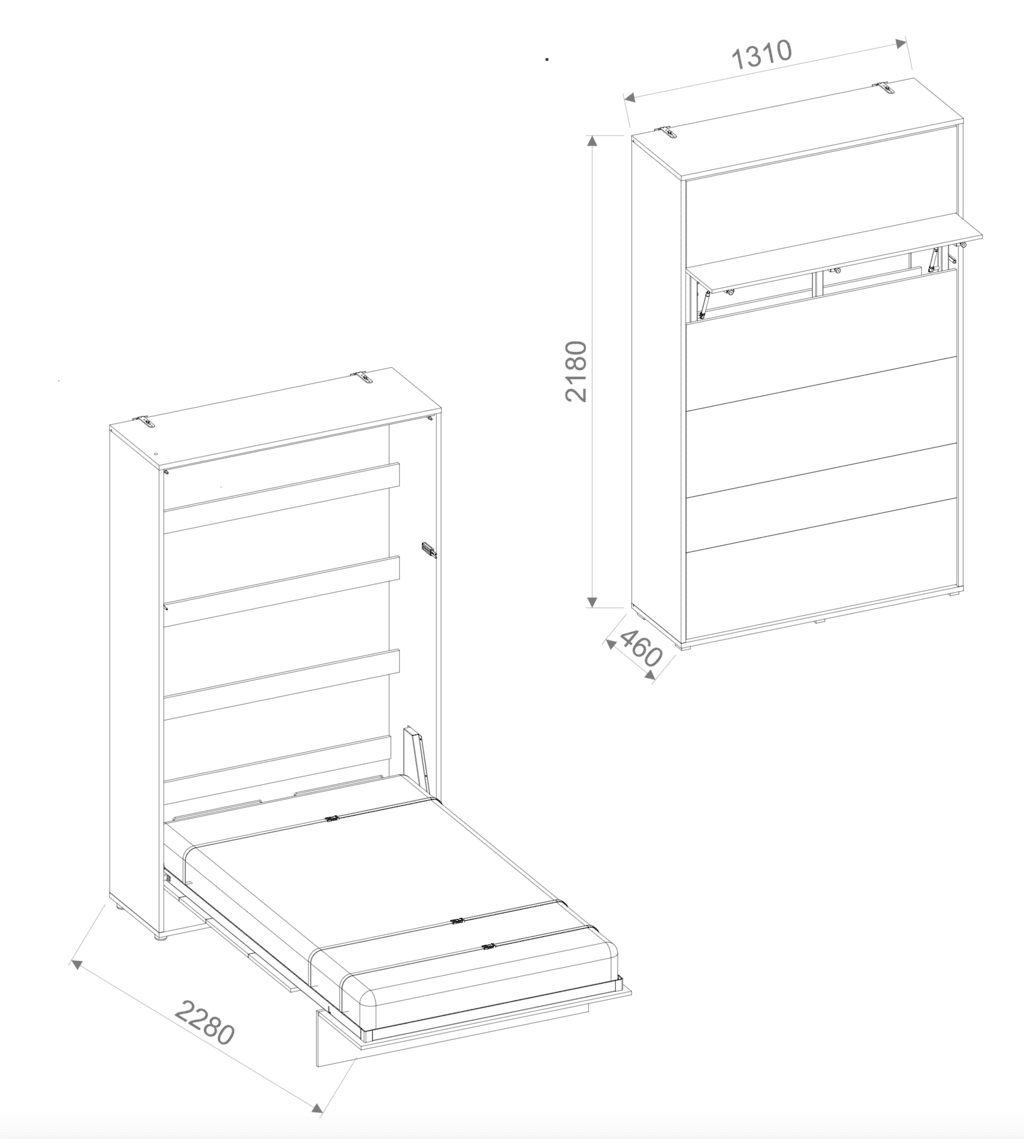 Details about BC-02 Vertical Wall Bed Concept White Matt 120cm