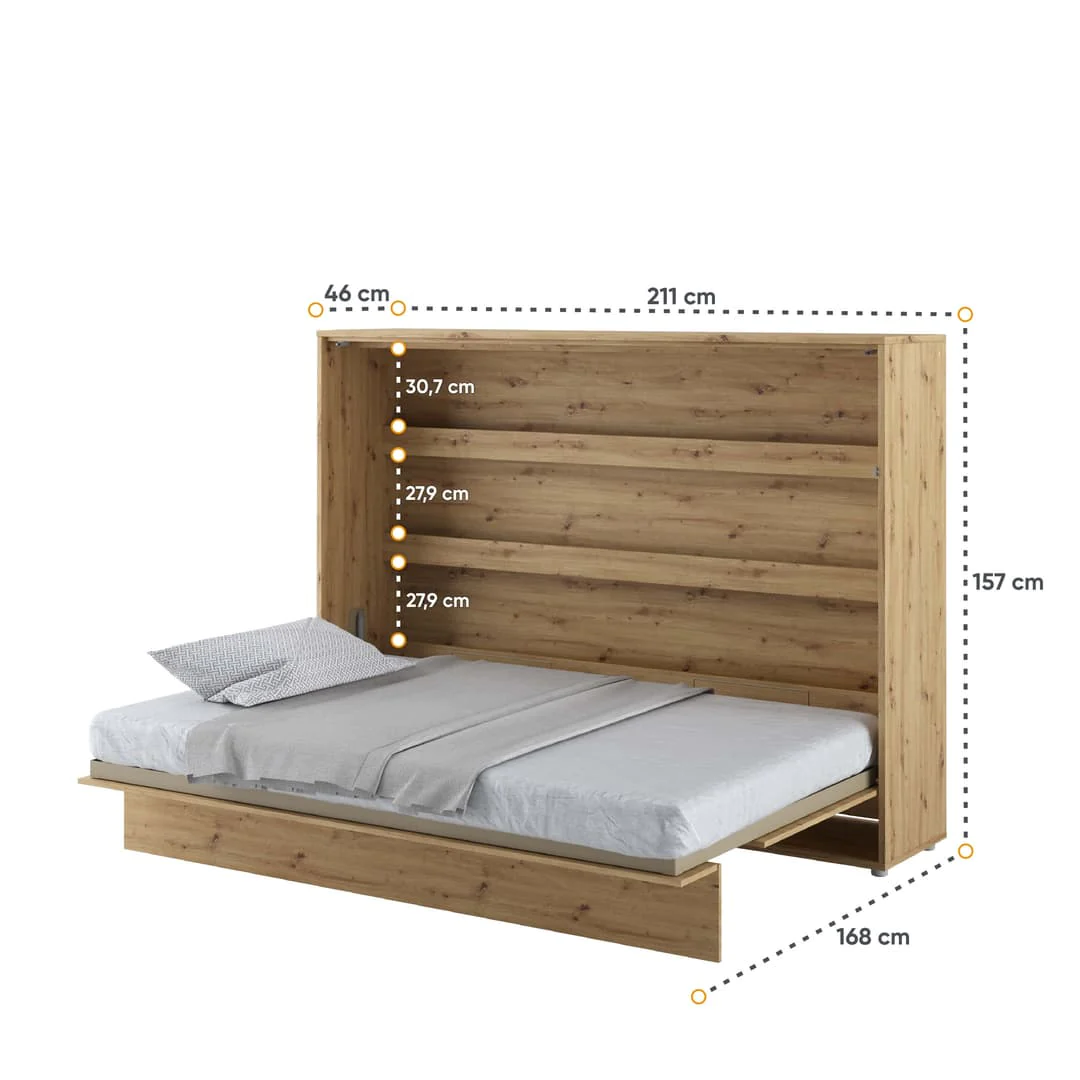 BC-04 Horizontal Wall Bed – Oak Artisan 140cm | Fold-Away Bed with Shelves & Soft-Close System