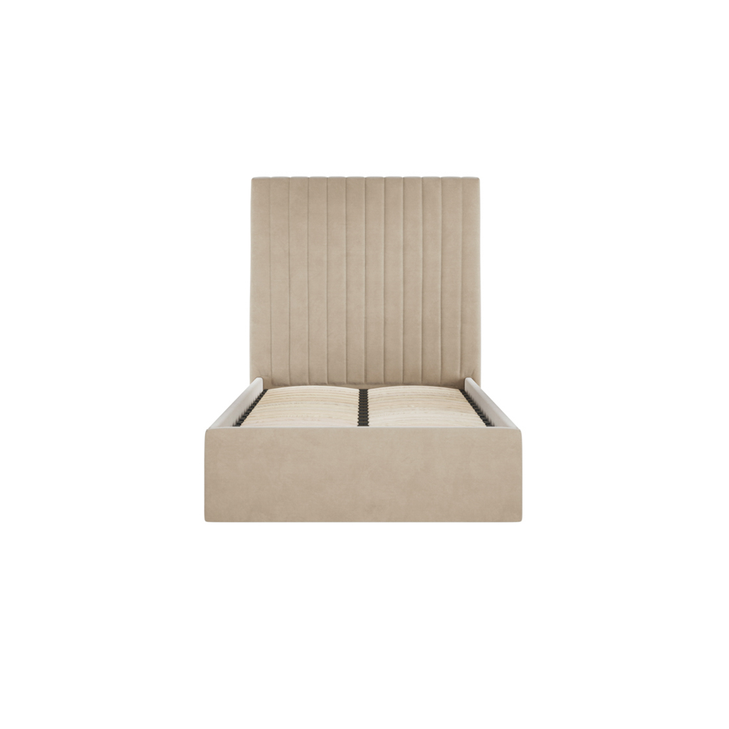 Berlin Beige Tall Ottoman Single Bed | Velvet Storage Bed