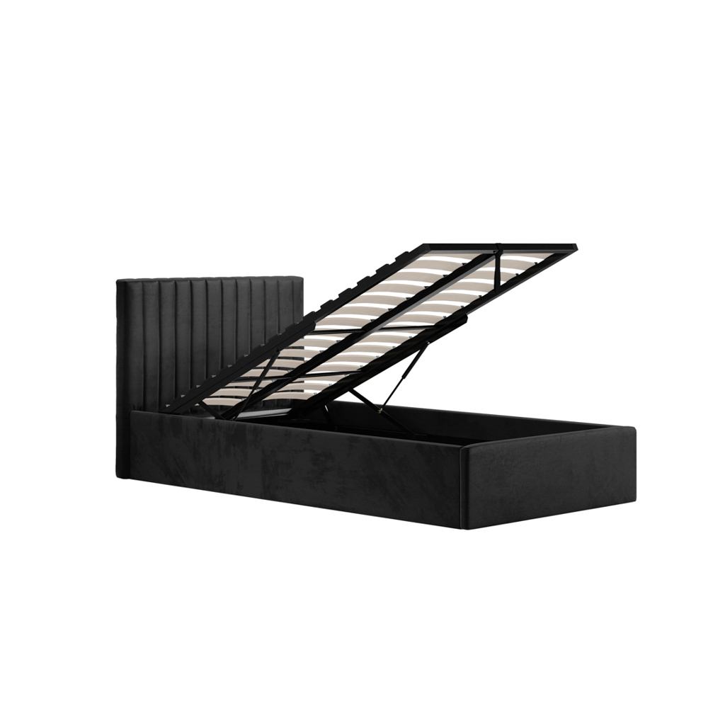 Berlin Black Fabric Ottoman Storage Single Bed