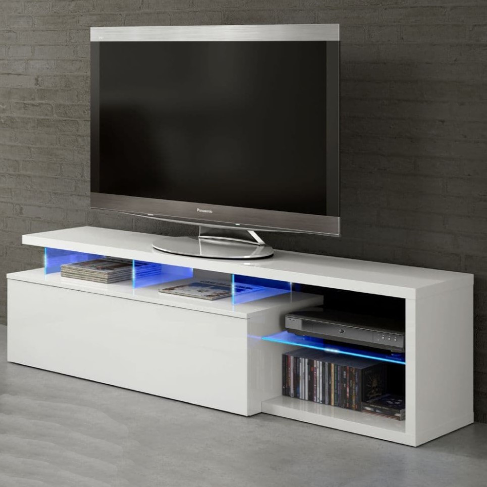 Bexley White Soft Gloss TV Cabinet Entertainment Unit – Sleek Design with LED Lights