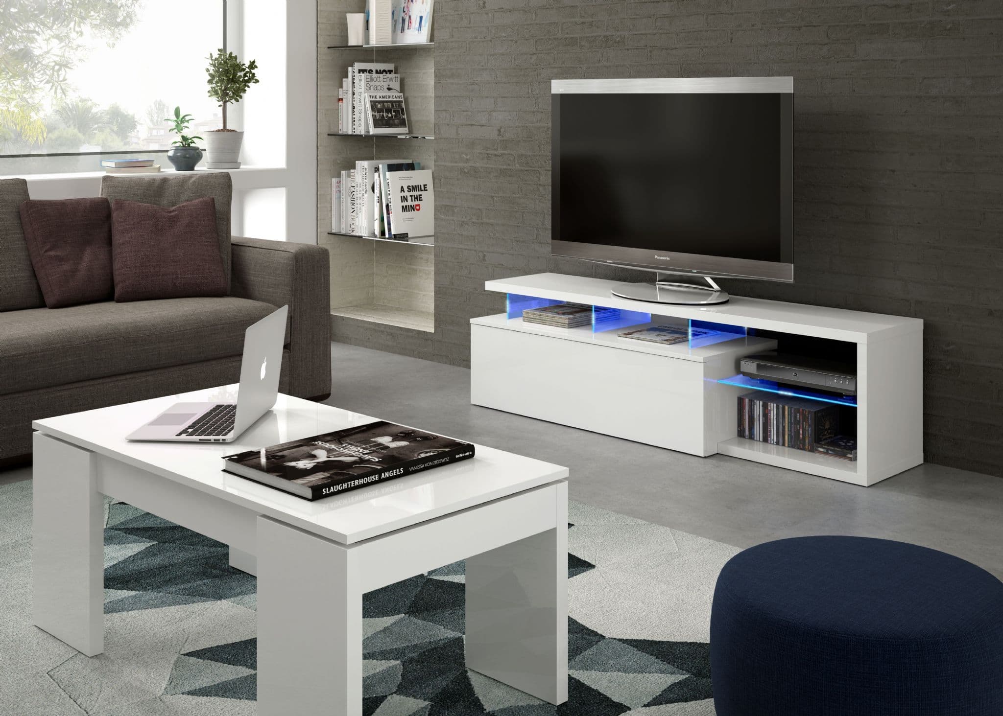 Bring contemporary style and practical storage to your entertainment area with the Bexley White Soft Gloss TV Cabinet Entertainment Unit. This sleek cabinet blends clean lines with ambient lighting for a refined look: