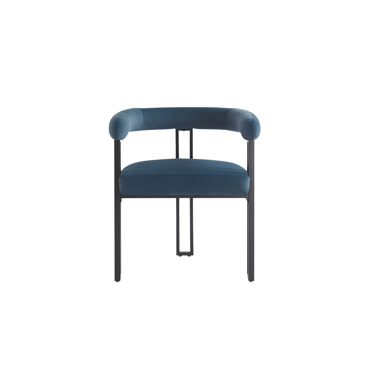 Its standout feature is the horseshoe‑shaped backrest, which curves forward to gently wrap around the seat, creating a supportive and visually striking silhouette. The seat and backrest are generously cushioned and upholstered in Crib5‑rated fabric, making the chair suitable for both home and commercial environments.