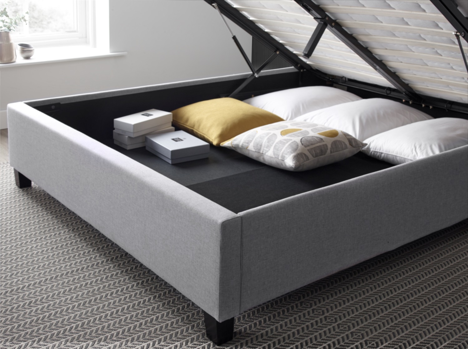 Upgrade your bedroom with the Brandon Grey Fabric Ottoman Bed – a sleek and practical storage solution wrapped in soft linen-blend upholstery. This ottoman bed is designed for both comfort and convenience, featuring a gas-assisted lift-up frame that reveals a fully boarded 17cm deep storage compartment—ideal for storing bedding, clothing, or seasonal items without contact with the floor.