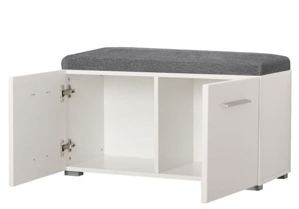 Details about Bray Hallway Storage White Gloss with Grey Cushion Seat