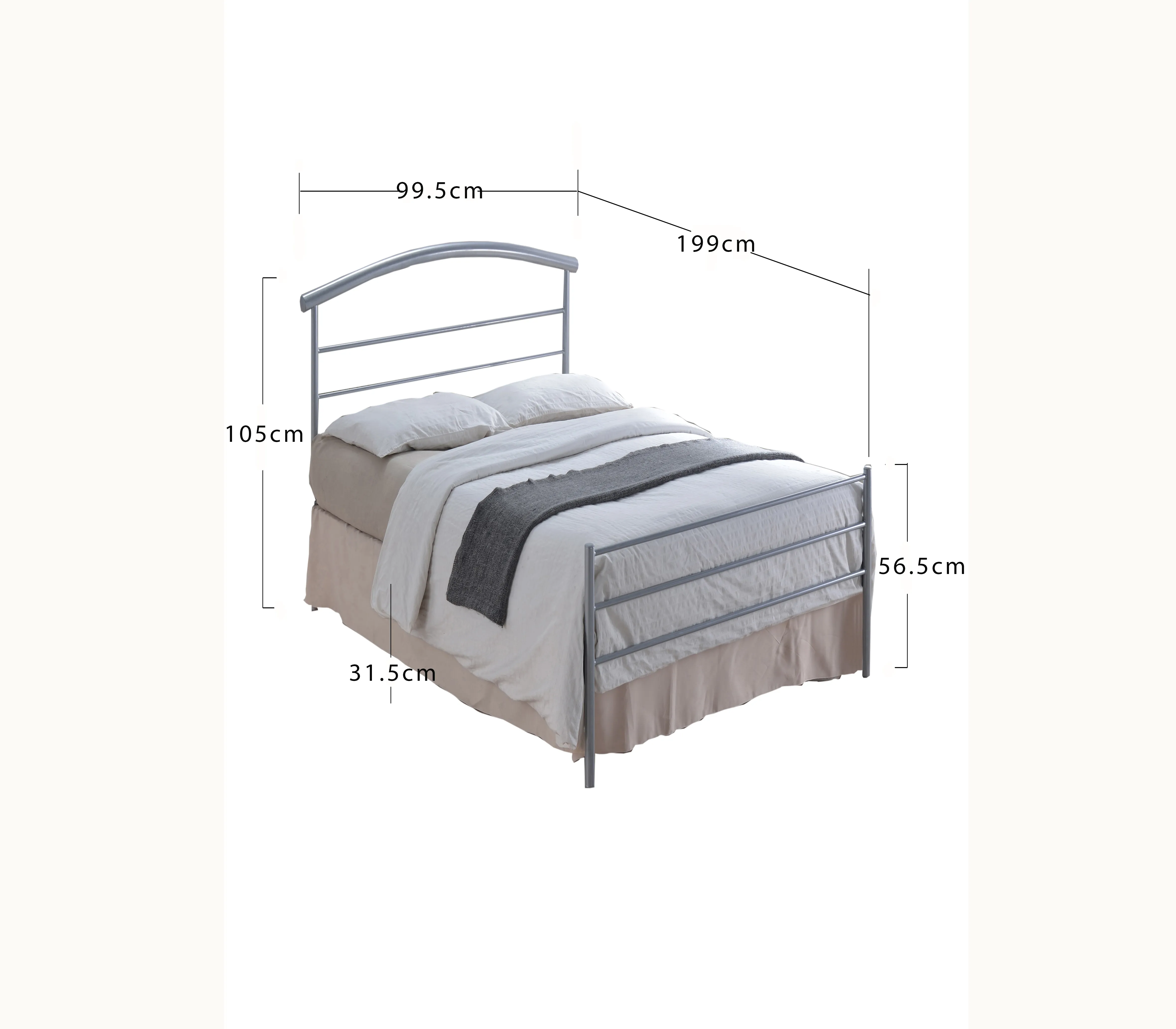 Details about Elegant Brennington Metal Single Bed in Silver - Perfect for Any Room