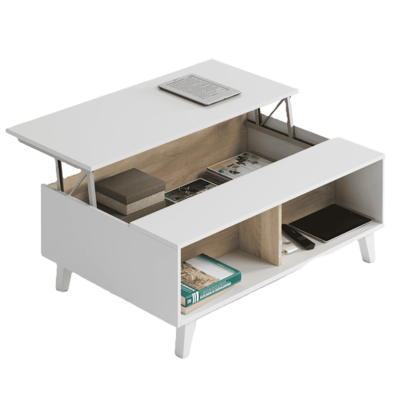 - Lift-Up Storage Compartment – Hidden space for remotes, magazines, or essentials
