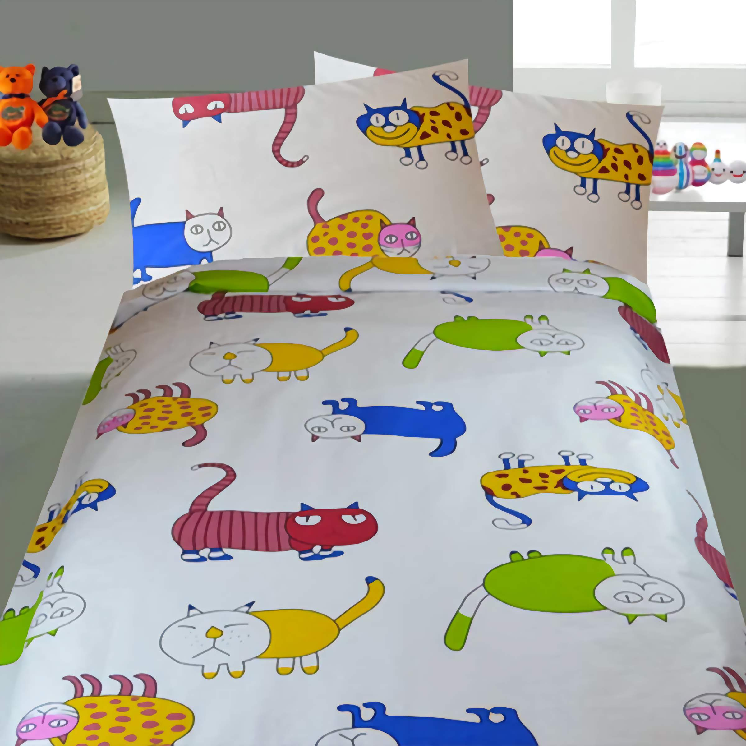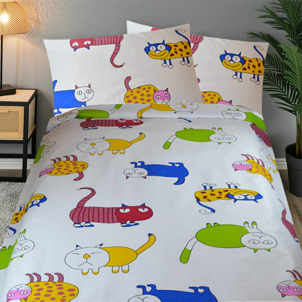 The Cats Print Cotton Duvet Cover and Pillowcase Set – Single Size combines comfort with character. Made from 100% cotton at 146 g/m² thickness, it’s breathable, durable, and easy to care for. The playful cat-themed design adds a whimsical touch to any bedroom, while the zip fastening ensures a secure fit and hassle-free maintenance. Whether you're decorating a child’s room or gifting a cat lover, this set delivers cozy charm with everyday practicality.