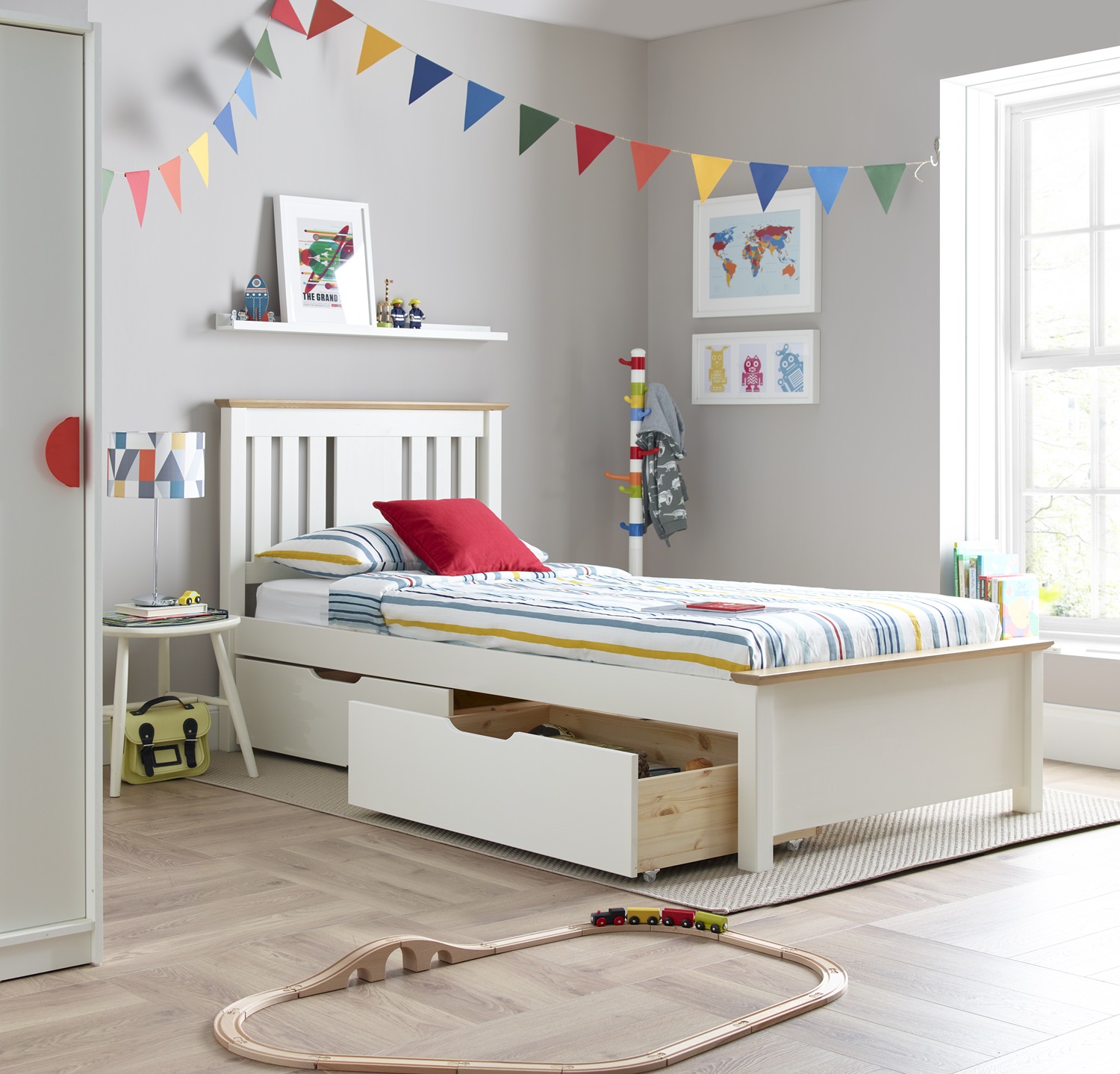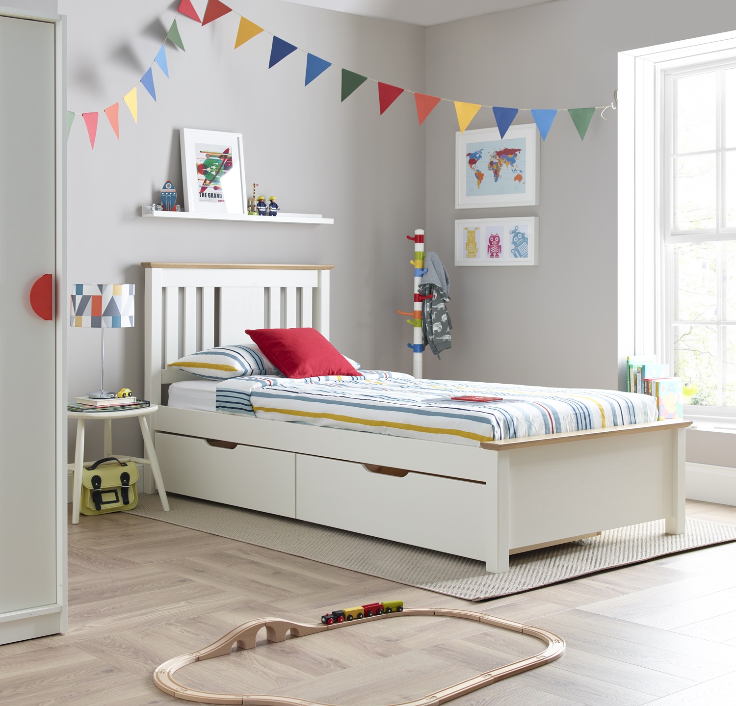 Chester White Bed – Single Size | Oak & White Kids Bed Frame with Optional Storage Drawers