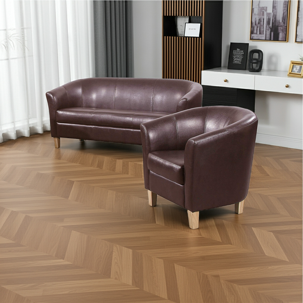 - Upholstery – PU leather in brown