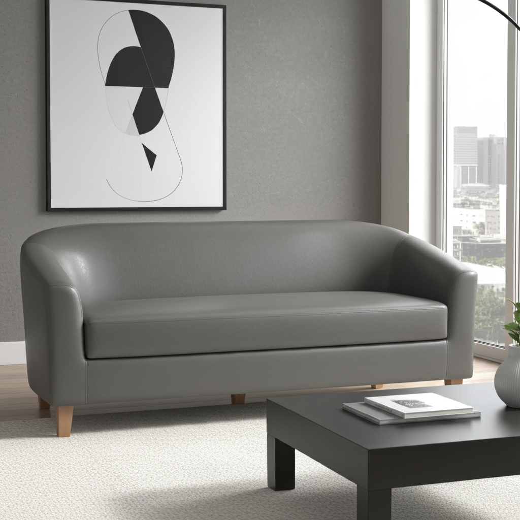 The Claridon 3 Seater Sofa – PU Grey blends modern design with everyday practicality. Upholstered in durable grey PU leather, it offers a neutral tone that complements minimalist, industrial, or cozy interiors. Its generous three-seater size and sofa-in-a-box format make it perfect for larger spaces while ensuring easy delivery and setup. Whether you're furnishing a lounge, guest room, or office, this sofa delivers comfort, durability, and timeless appeal.