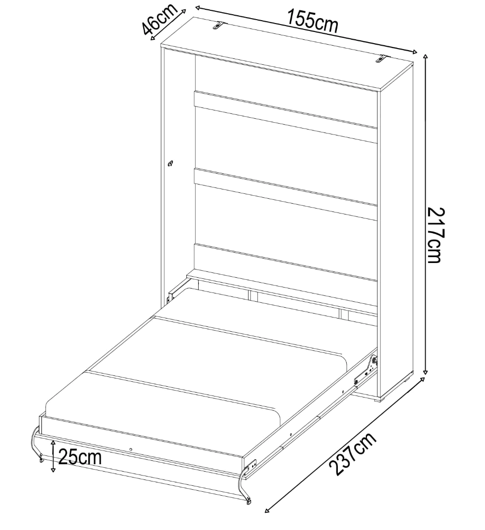 Made from the finest quality of solid laminated board, the CP-01 vertical wall bed is a practical solution for houses with limited floor space. It is built with a locking system to secure the bed within its cabinet, preventing it from opening unless needed to. In addition, the bed is equipped with a self-holding feature, allowing it to remain still in mid-air, if left unattended. Duvet straps are also included and three colours; white matt, white gloss and grey matt are available.