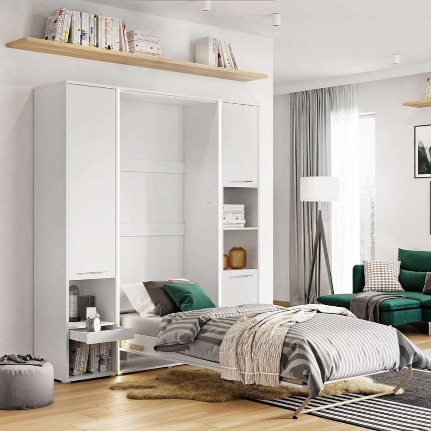 CP-03 Vertical Wall Bed Concept 90cm with Storage Cabinet White Matt