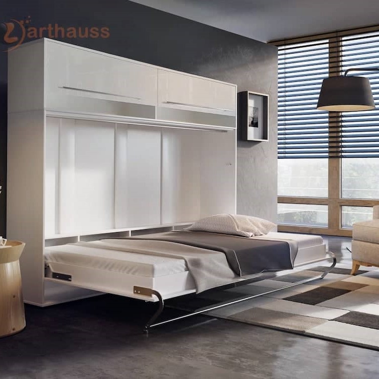 Details about CP-04 Horizontal Wall Bed Concept 140cm with Over Bed Unit White Gloss