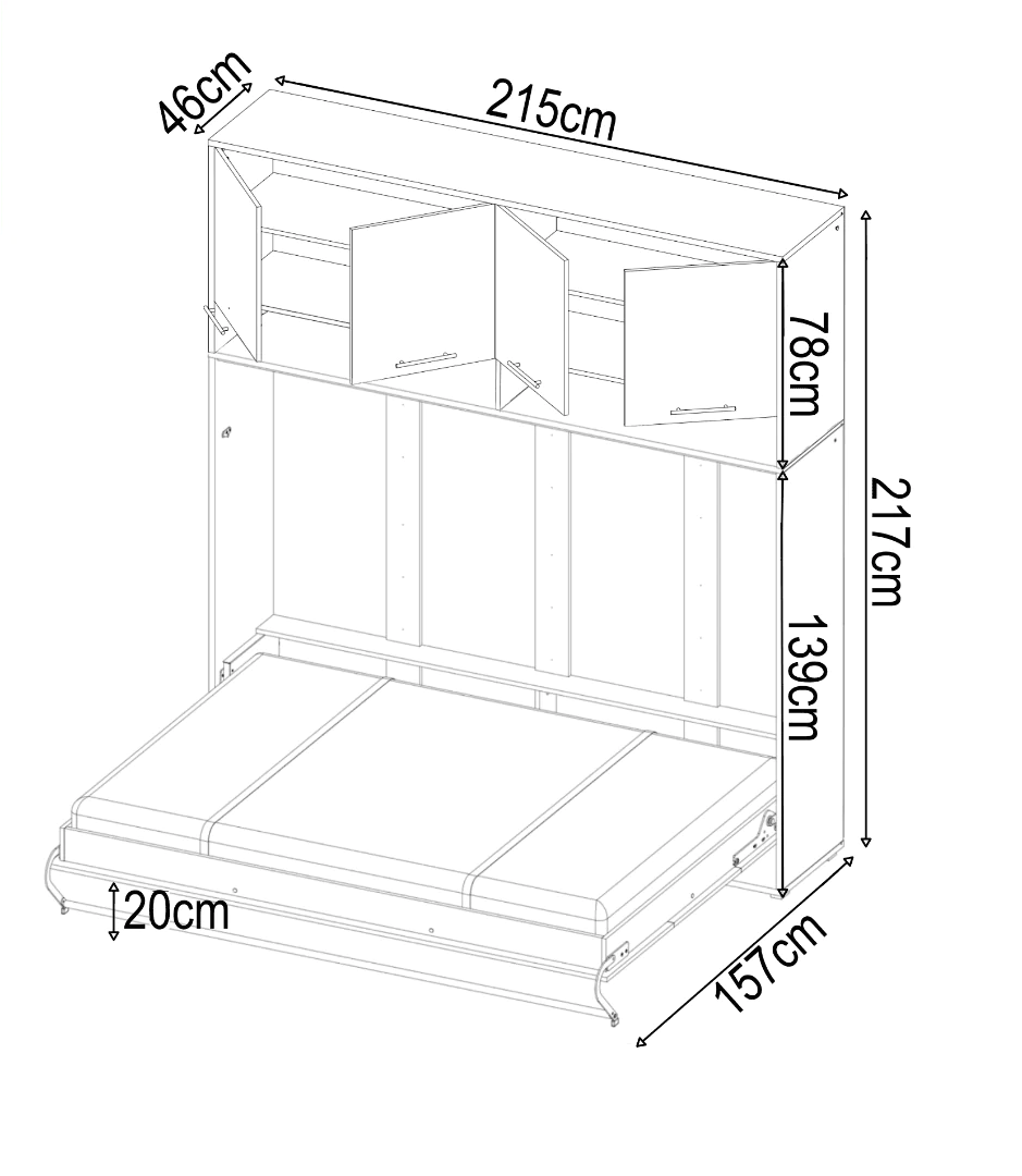 - Dimensions of bed: W215cm x H139cm x D46cm when folded and D157cm when unfolded