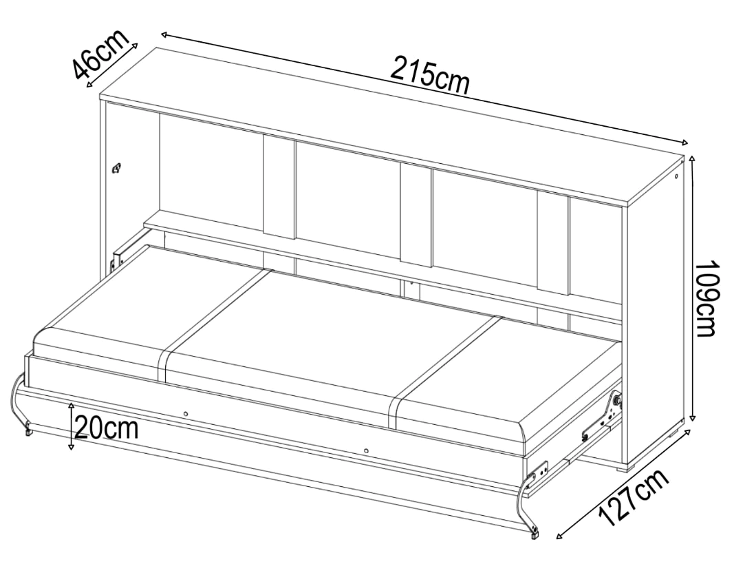 - Dimensions: W215cm x H109cm x D46cm when folded and D127cm when unfolded