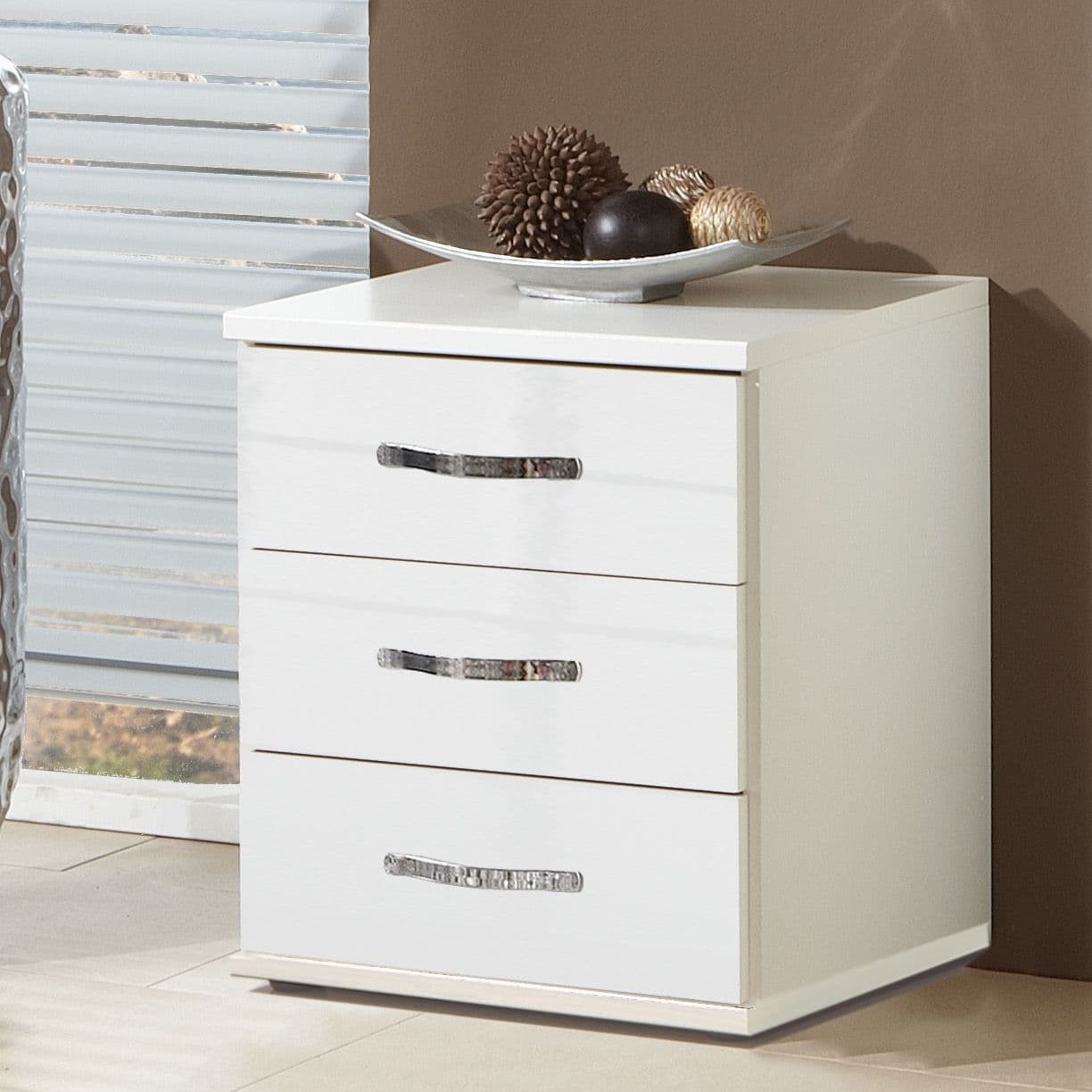 Dean White Gloss 3 Drawer Bedside Cabinet Table – Sleek Storage with German Craftsmanship