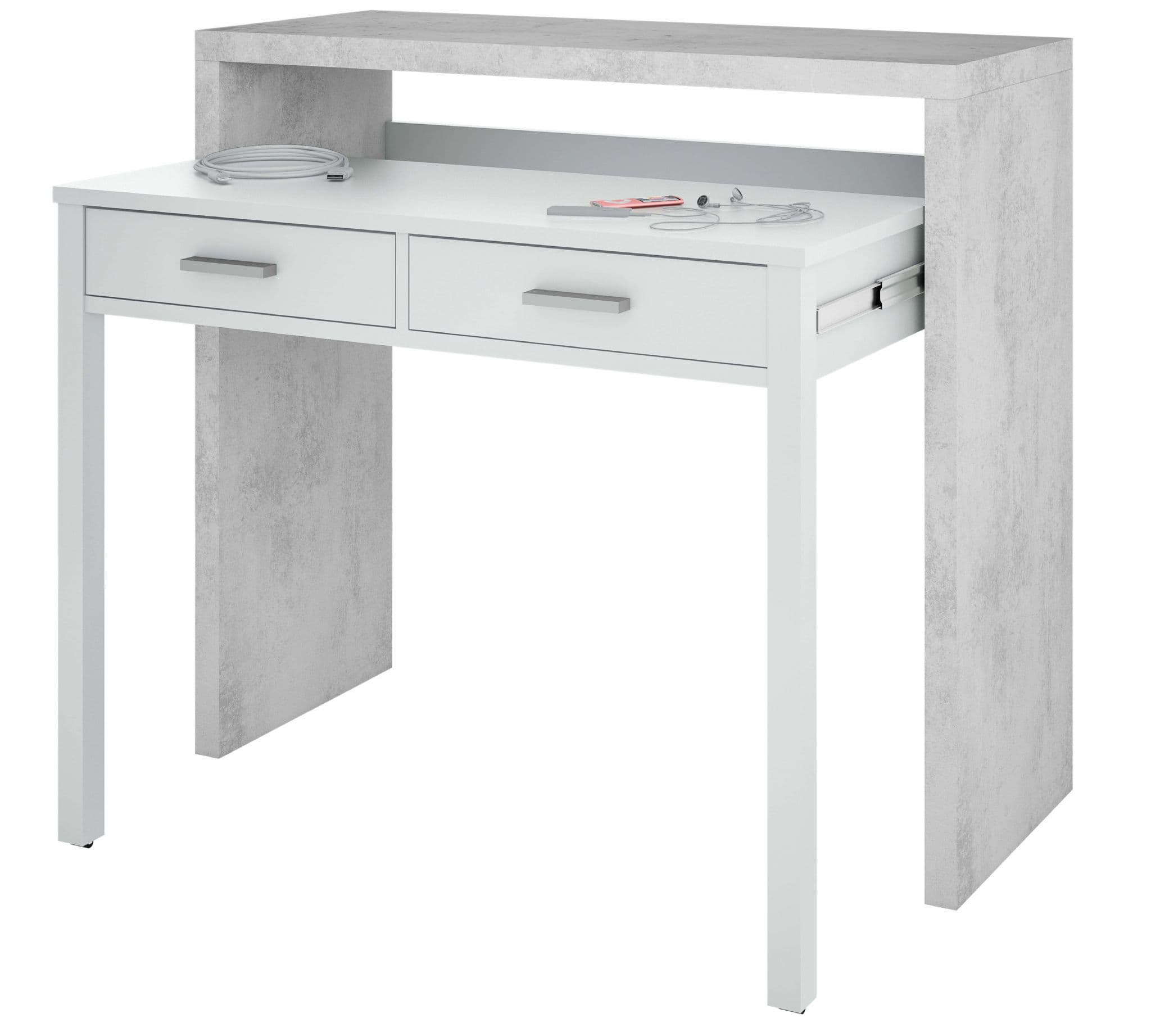 Upgrade your space with the Epsom Computer Writing Desk in Concrete Grey & White, a versatile and compact unit designed for modern interiors. This multi-use table offers: