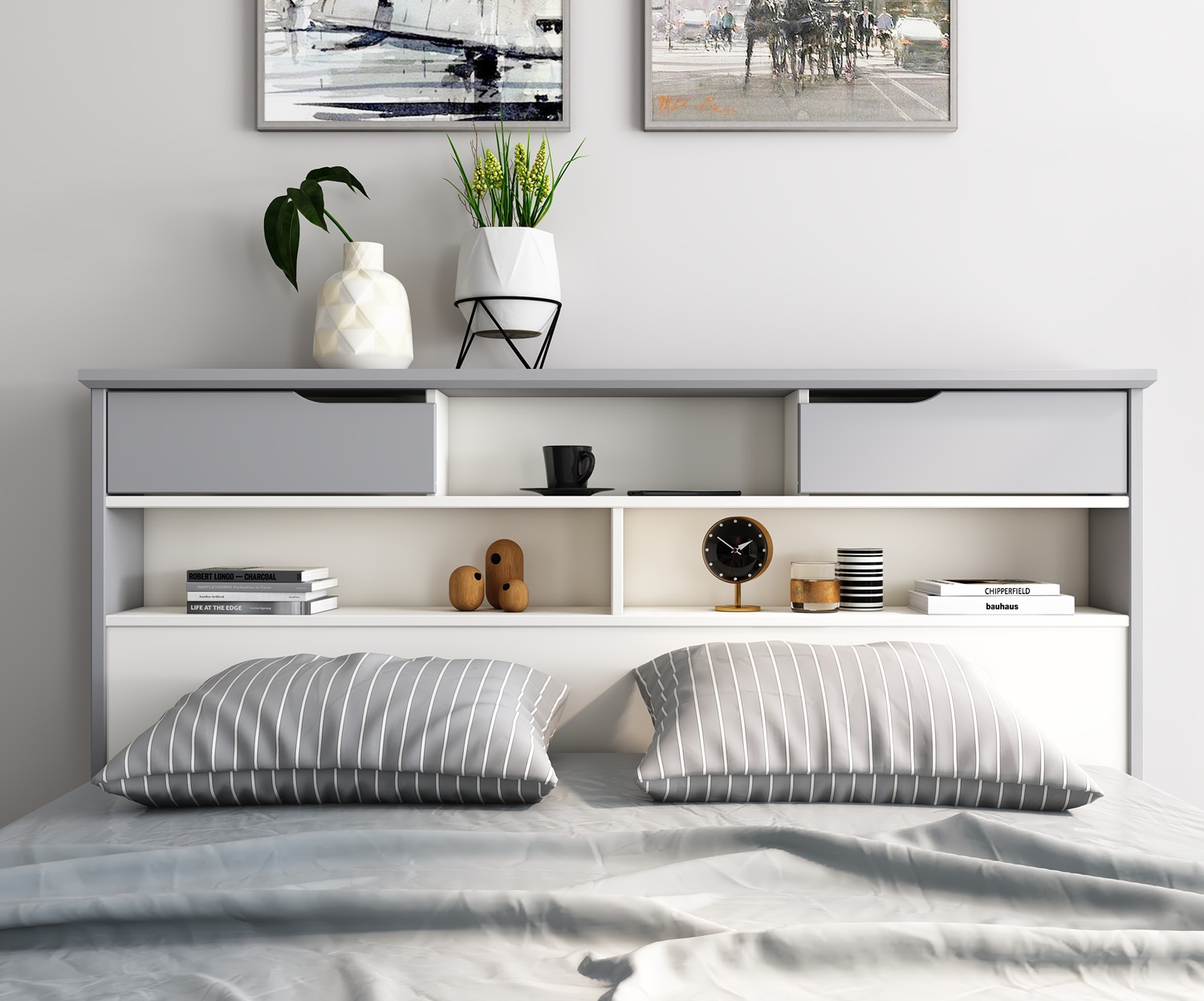 A charming and versatile wooden bed suitable for any bedroom. The Fabio comes with a foot end and headboard that double up as storage spaces ideal for books, blankets and other trinkets. The headboard includes 2 small drawers. This solid bedframe comes with under-bed space that is ideal for 1 or 2 Fabio Drawers (1 either side of the bed) which are sold separately.