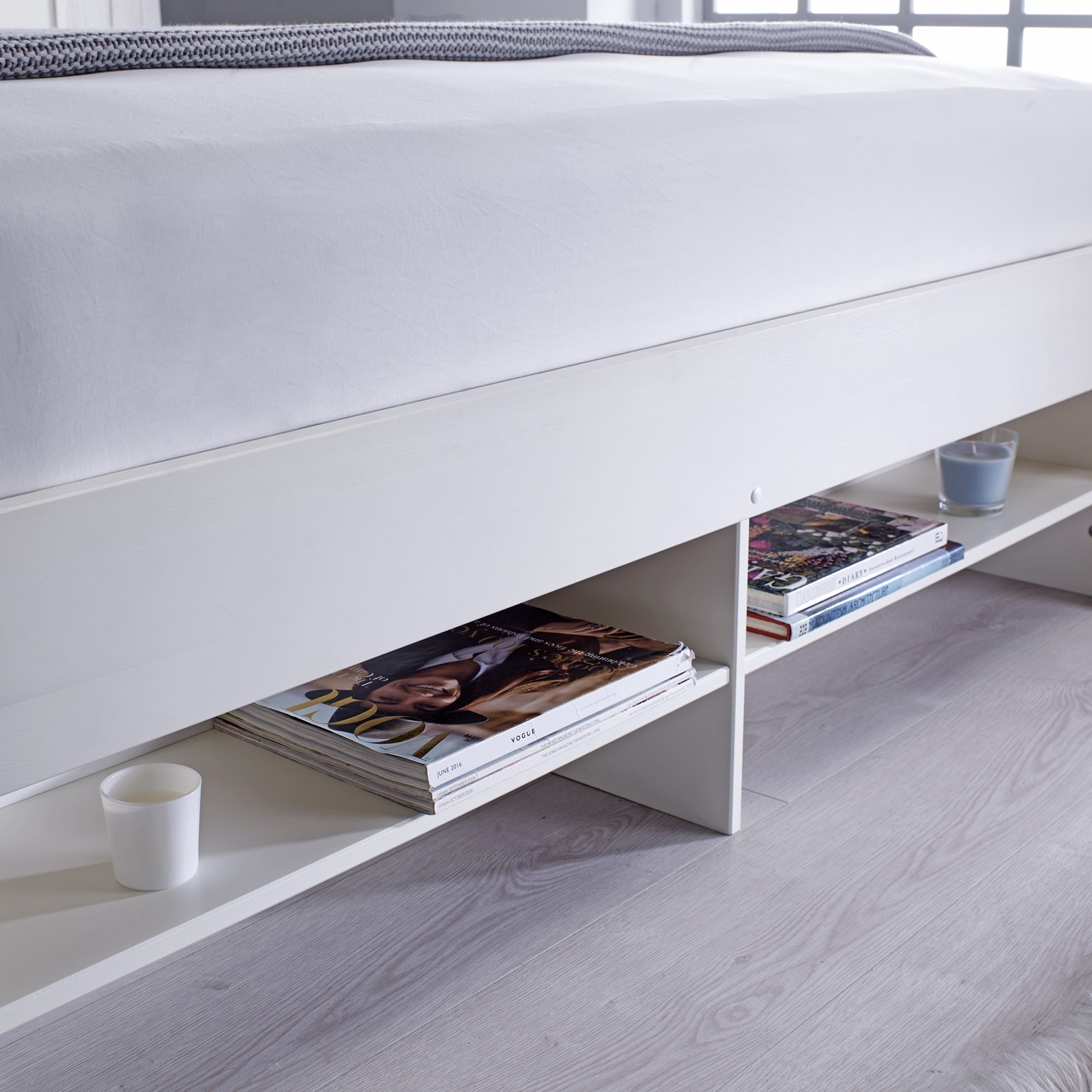 A charming and versatile wooden bed suitable for any bedroom. The Fabio comes with a foot end and headboard that double up as storage spaces ideal for books, blankets and other trinkets. The headboard includes 2 small drawers. This solid bedframe comes with under-bed space that is ideal for 1 or 2 Fabio Drawers (1 either side of the bed) which are sold separately.