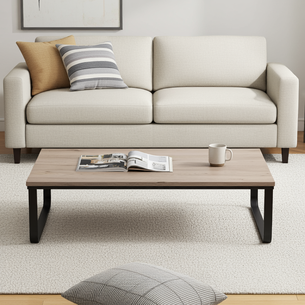 The Felix Coffee Table blends industrial charm with minimalist design. Its natural wood-effect finish adds warmth, while the painted black metal legs provide a sturdy, modern contrast. Measuring 105 cm wide, it’s ideal for living rooms that value both style and function. Whether you're hosting guests or enjoying a quiet evening, this table offers a clean surface for drinks, books, or décor.
