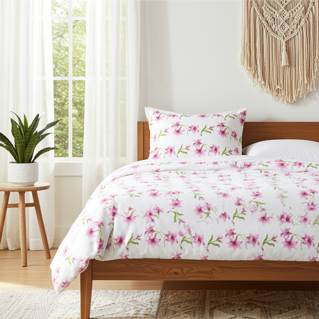 The Flannelette Single Duvet Cover Set – Pink Flowers offers a soft-to-the-touch finish ideal for colder months. Made from 100% brushed cotton with a thick 155 gsm weight, this flannelette weave features a long, flat-lying pile that enhances warmth and texture. The pink floral design adds a gentle charm to any bedroom, while the button fastening ensures secure closure and easy care. Whether for a child’s room, guest bed, or cozy retreat, this set combines style and comfort with everyday practicality.