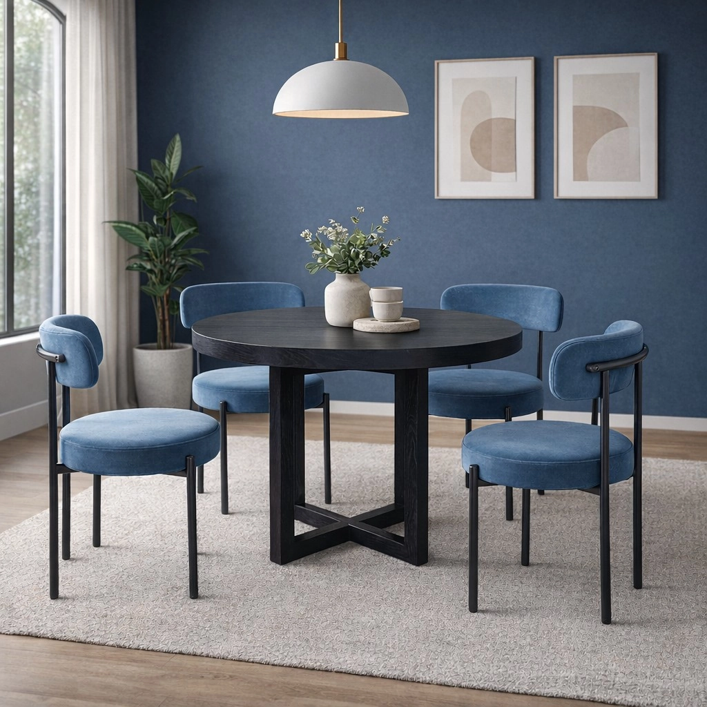 The Flora Dining Chair brings mid‑century charm with its rounded silhouette, cushioned Crib5‑rated seat and gently curved backrest. Supported by a sleek black powder‑coated steel frame, it’s available in Olive Velvet, Blue Velvet and Charcoal Boucle. Sold in sets of two, it’s ideal for both home and commercial dining spaces.